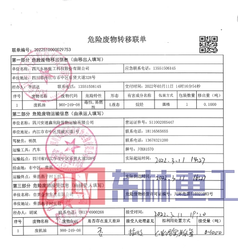 2022年3月危險(xiǎn)廢物污染治理信息公示